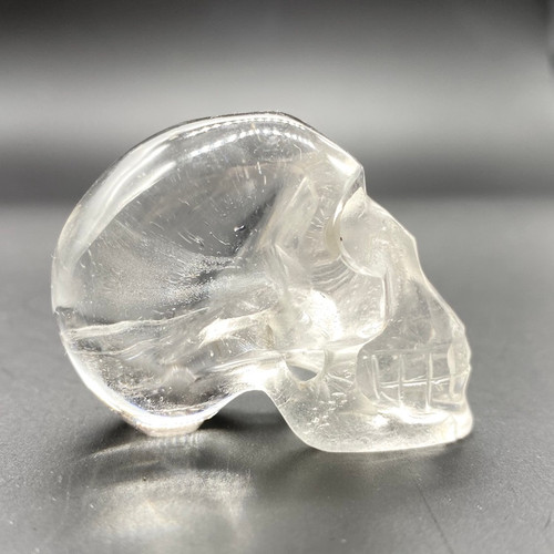 Clear quartz is known for enhancing clarity and for amplifying intention and energy. I didn't do a reading on the smaller skulls, so the overall theme of this one will have to be gleaned by its next keeper. You may be able to dedicate it to a theme by programming the quartz for your own purposes.
