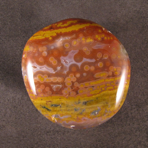 This Ocean Jasper Pebble from Madagascar is filled with reds and orangey yellows! There is even a little bit of purple! You can see that there are some tiny fish egg orbs present as well. Like most Ocean Jasper, this piece has some natural fractures.