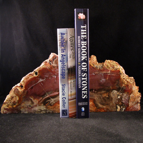 This amazing pair of Petrified Wood Bookends has awesome color! It is filled with reds, browns, greysand even a orange! Both the front and back are polished and the sides are left with their natural bark.