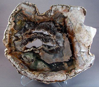 The rich color is evidence of mineral replacement, including iron, manganese, and silica.
