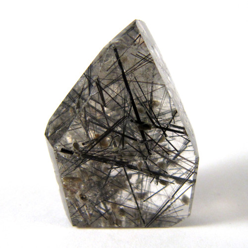 Black Tourmaline needles are throughout this lovely piece of Quartz. You can also see some shimmering mica through the cloudyness!